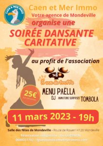 L’agence Caen & Mer Immo organise une soirée dansante caritative, au profit de notre école de chiens-guides ! Cette soirée se tiendra samedi 11 mars 2023 à 19h, à la salle des fêtes de Mondeville (route de Rouen). Au programme : Menu Paëlla, DJ, animations surprises et tombola ! (25€ par personne) N’hésitez pas à contacter Mme Flo Guesnon de Caen & Mer Immo au pour réserver votre place. Nous tenons à remercier vivement toute l’équipe de Caen & Mer Immo pour leur soutien envers notre…