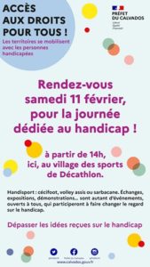 A Vue de Truffe présentera ses actions d'éducation de chiens-guides samedi 11 février 2023, de 14h à 17h, lors d'un après-midi autour de l'accessibilité, organisé par la Direction départementale de l'emploi, du travail et des solidarités du Calvados. Plusieurs associations dédiées au handicap seront présentes dans l'enceinte du magasin Décathlon de Mondeville. Venez nombreux !