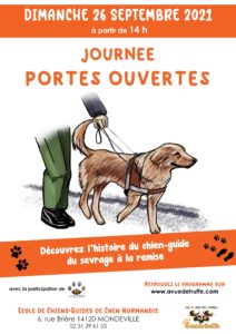 L’association A Vue de Truffe a plaisir de vous convier le dimanche 26 septembre 2021, lors de sa journée Portes Ouvertes ! La journée se tiendra à partir de 14h, aux locaux de notre association situés 6, rue Brière à Mondeville. L’association vous présentera l’histoire du chien-guide, de son sevrage à sa remise, ainsi que les chiens-guides formés cette année. Au programme, vous pourrez également retrouver divers ateliers de sensibilisation au handicap visuel et au chien-guide, ainsi qu’une présentation des activités…