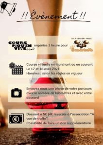 L’association « Cours Mouen Vite » organise une course virtuelle au profit de notre école de chiens-guides, qui se déroulera samedi 17 et dimanche 18 avril 2021 ! Le principe : afin d’éviter les rassemblements et de respecter le mesures sanitaires, Cours Mouen Vite vous propose d’effectuer une heure de course ou de marche, sur le parcours de votre choix , où que vous soyez. En courant ou en marchant, vous pouvez soutenir l’association en vous inscrivant sur le lien suivant : https://cours-mouen-vite.s2.yapla.com/fr/event—17913…